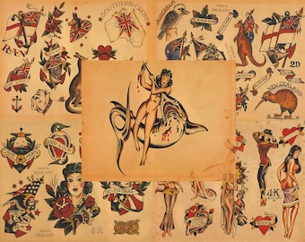 Sailor Jerry Traditional Vintage Style Tattoo Flash 5 Sheets Etsy